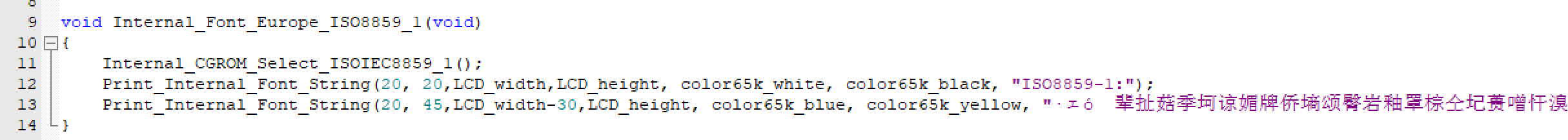 显示内建文字,调用API举例:Internal_CGROM_Select_ISOIEC8859_1(); //选择字符集